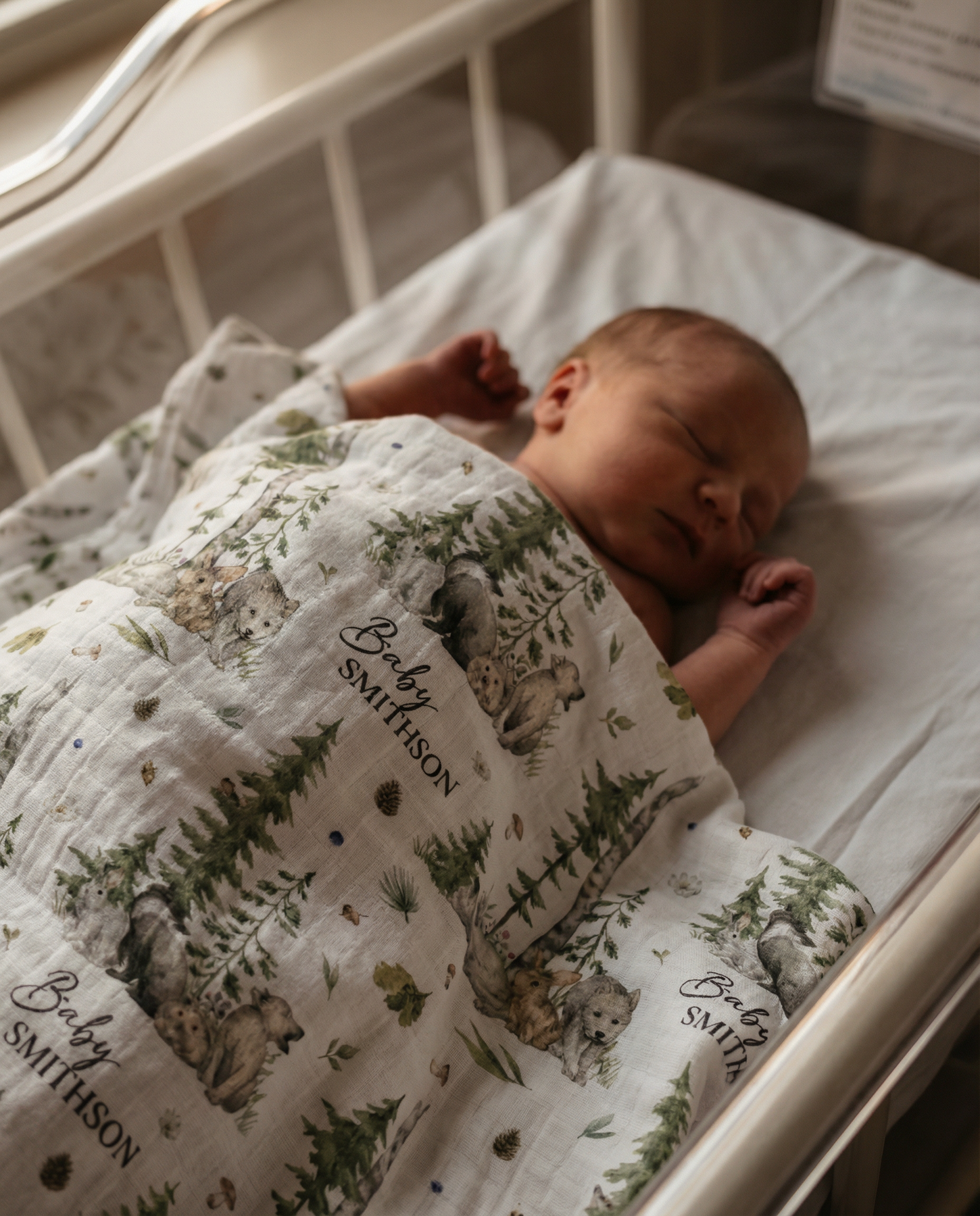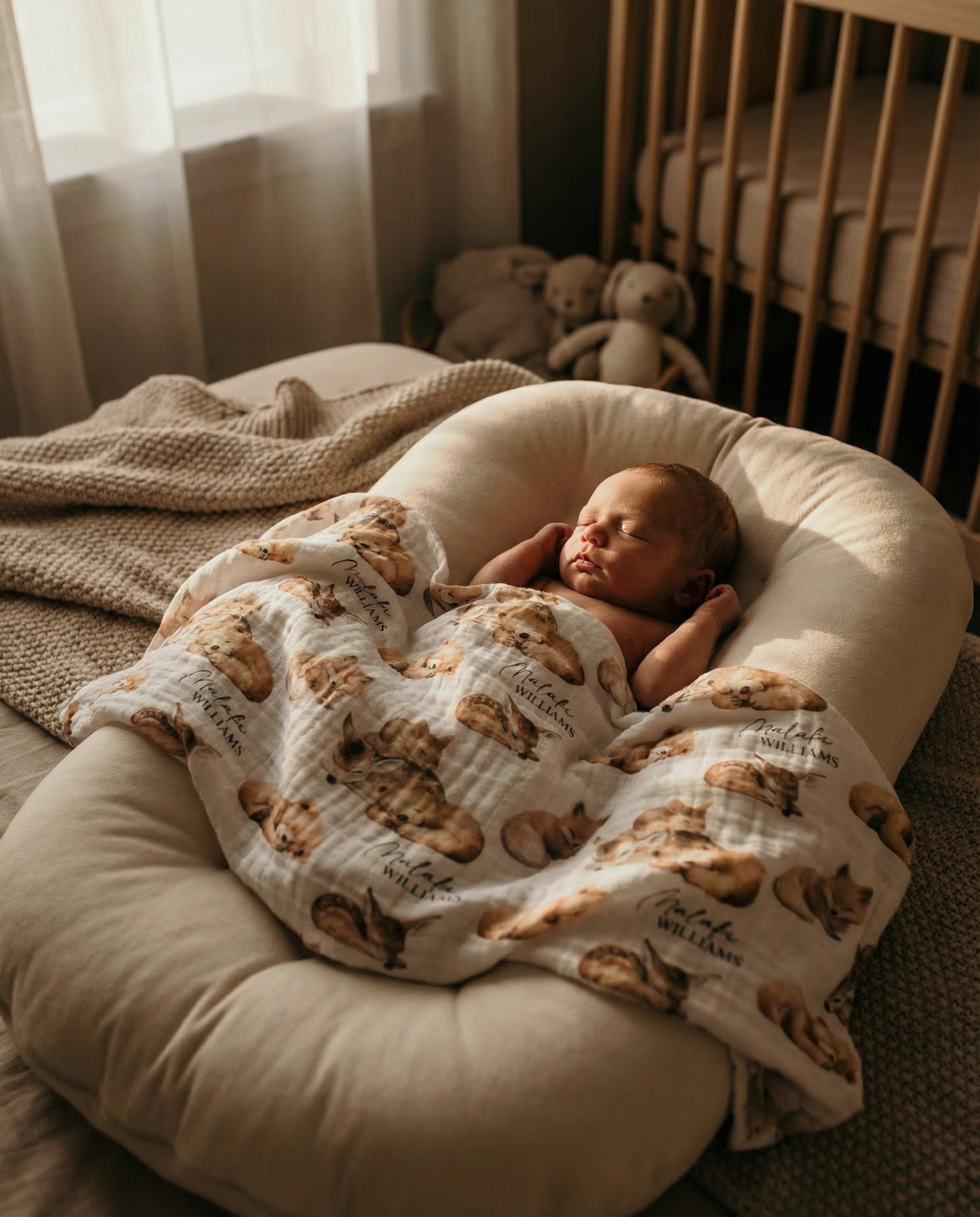Personalised custom muslin swaddle wrap with baby’s name, lightweight and breathable for newborn comfort