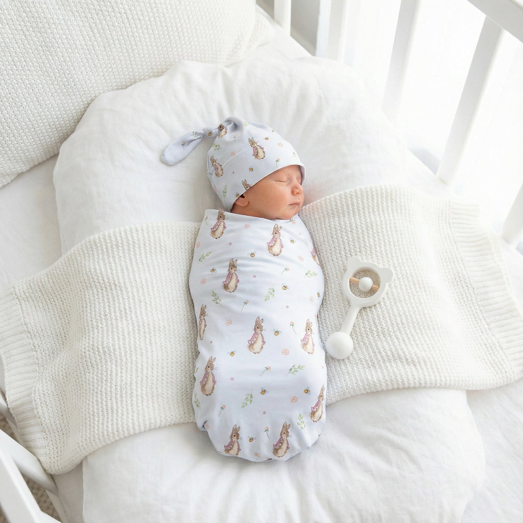 The swaddling blanket is beautifully soft and cosy, perfect for wrapping your baby snugly to create a calming sense of security. Featuring a sweet Flopsy design, it’s ideal not only for swaddling but also works beautifully as a nap blanket, stroller cover, breastfeeding cover, or lightweight pram blanket. A thoughtful and practical gift for newborns, baby showers, or welcoming a new arrival.
